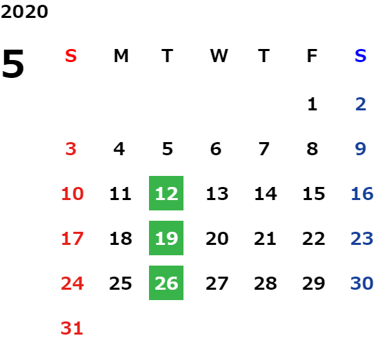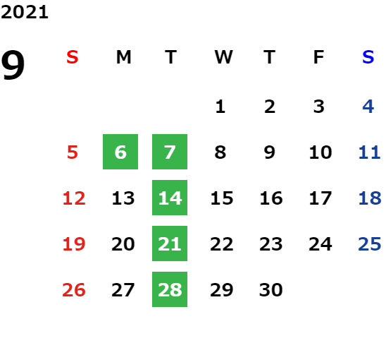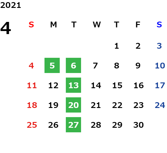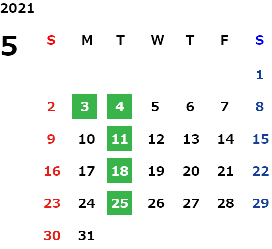 営業日カレンダー