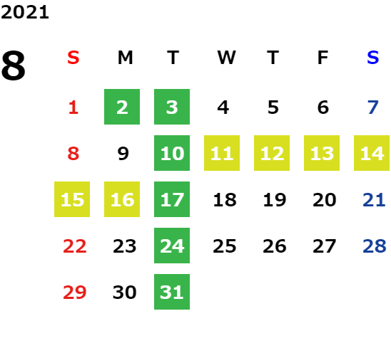※8月16日(土)は営業いたしますが、17日(日)~19日(火)はお休みとなりますのでご了承ください